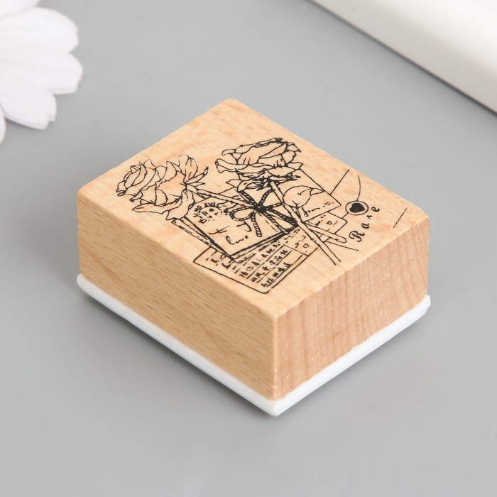 Печать дерево, резина "Розы и письма" 5х4х2,5 см