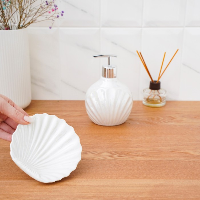 Набор аксессуаров для ванной комнаты «Ариэль», 2 предмета (дозатор 480 мл, мыльница), цвет белый