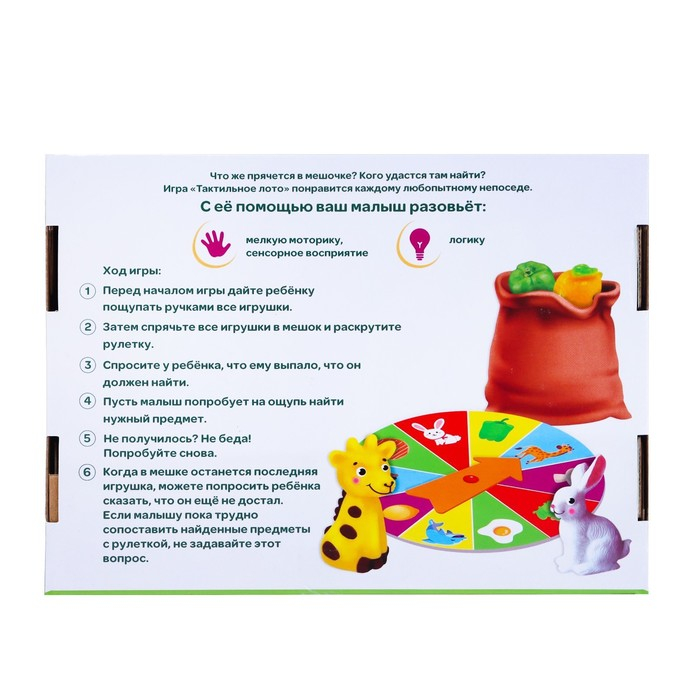 Тактильное лото с игрушками «Животные и продукты», по методике Монтессори