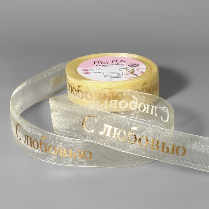 Лента капроновая с тиснением «С любовью», 25 мм, 22 ± 1 м, цвет бежевый/золотой