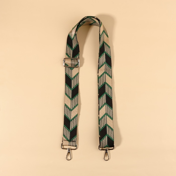 Ручка для сумки «Орнамент стрелки», стропа, с карабинами, 139 ± 3 × 3,8 см, цвет зелёный/чёрный