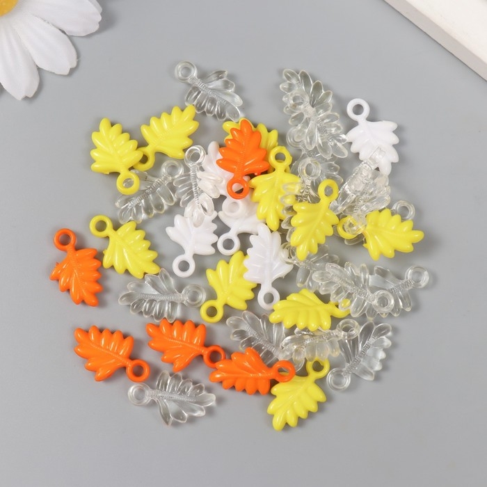 Декор для творчества "Листья. Жёлтый, оранж, белый и прозрачный" н-р 20 гр 2,2х1,4х0,4 см