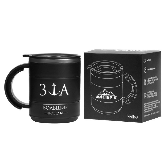 Термокружка, 450 мл, Поход "За большие победы", сохраняет тепло 2 ч, черная
