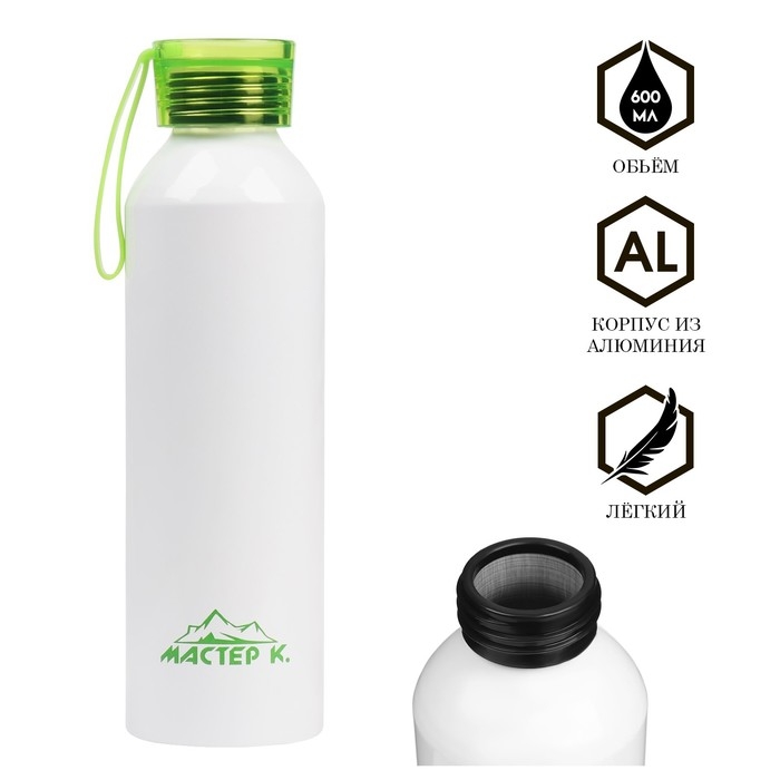 Бутылка для воды, 600 мл, "Мастер К", 6.6 х 23 см, корпус из алюминия