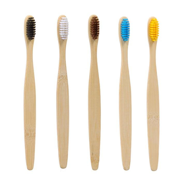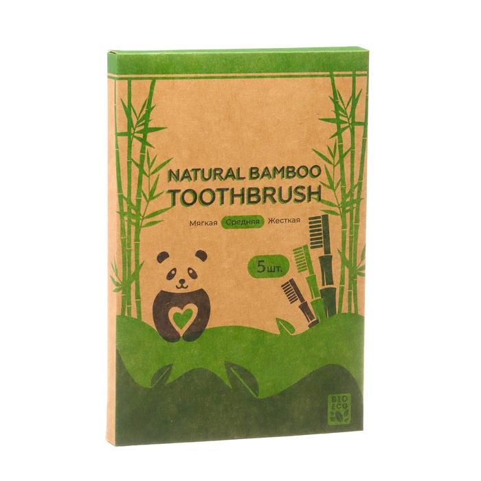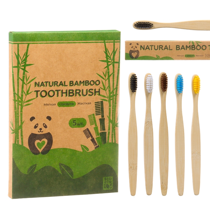 Зубная щетка бамбуковая средняя, 5 штук, микс цветов