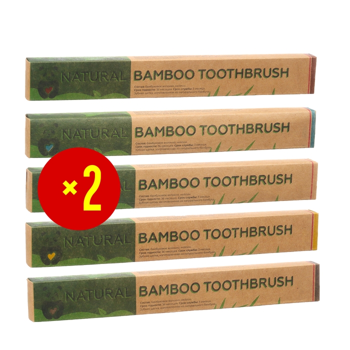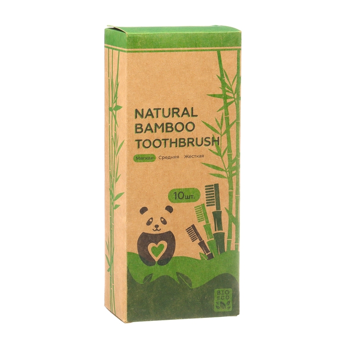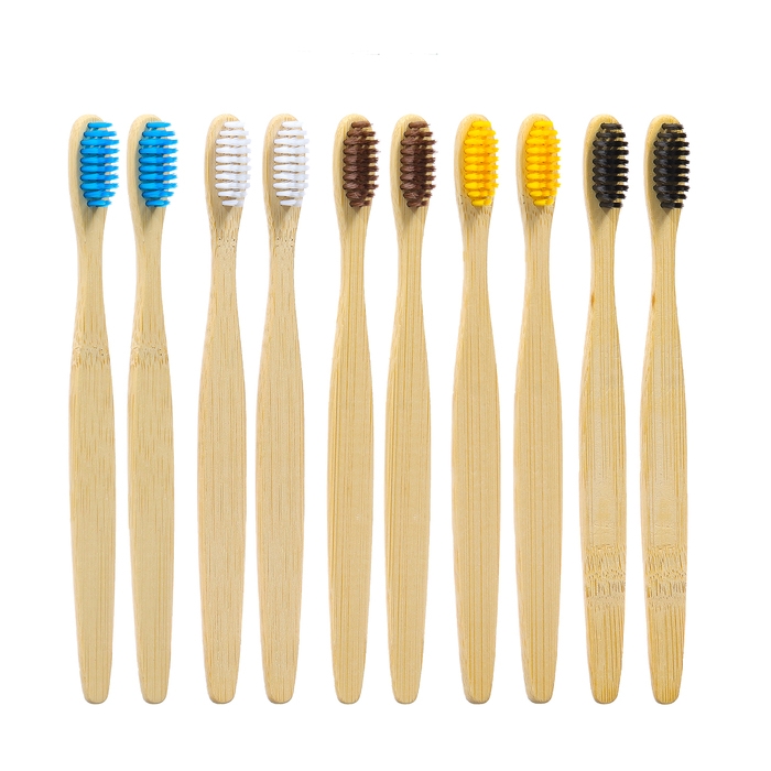 Зубная щетка бамбуковая мягкая, 10 штук, микс цветов
