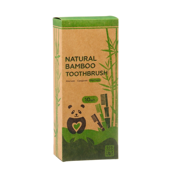 Зубная щетка бамбуковая жесткая, 10 штук, микс цветов