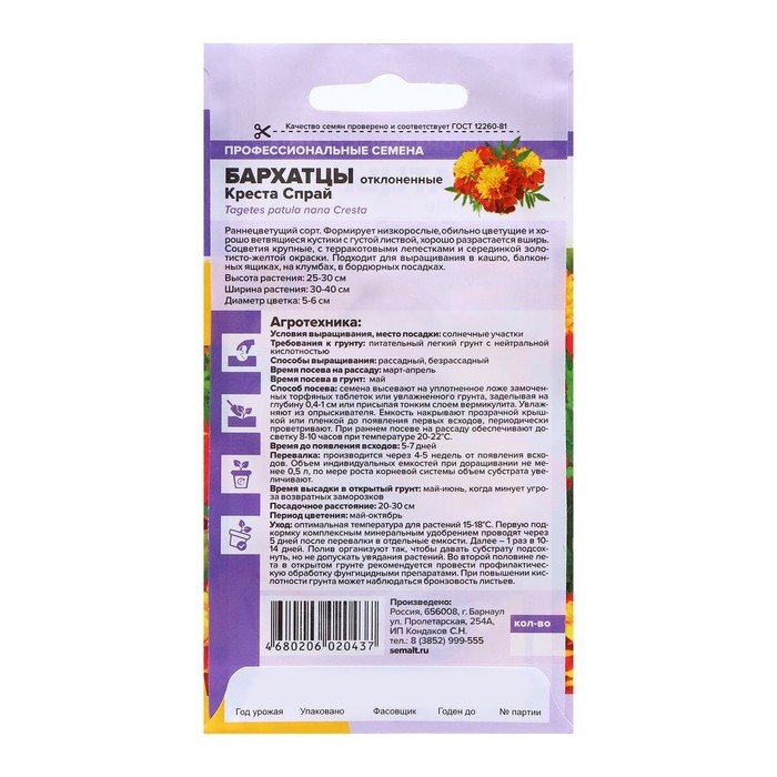 Семена Бархатцы "Креста Спрай", 10 шт.