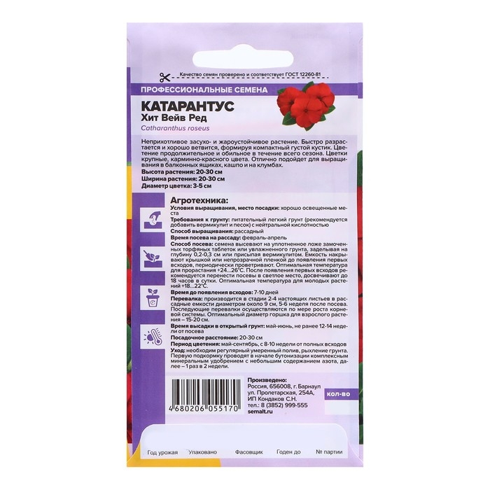 Семена Катарантус "Хит Вейв Ред", 5 шт