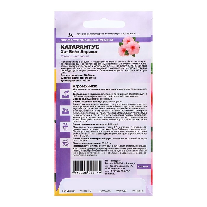 Семена Катарантус "Хит Вейв Эприкот", 5 шт