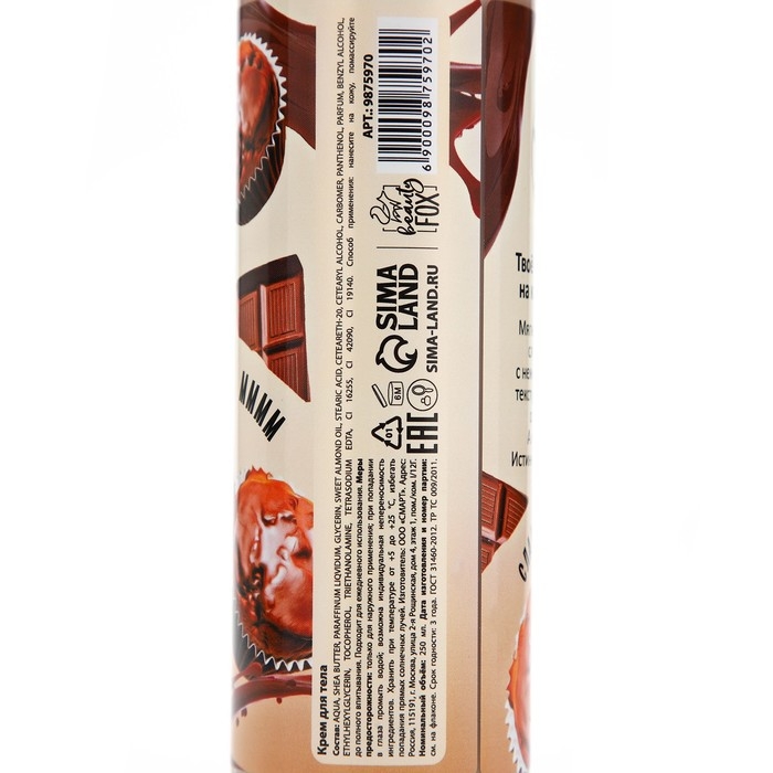 Крем для тела, интенсивное питание, 250 мл, аромат шоколадного суфле, CANDY FOOD
