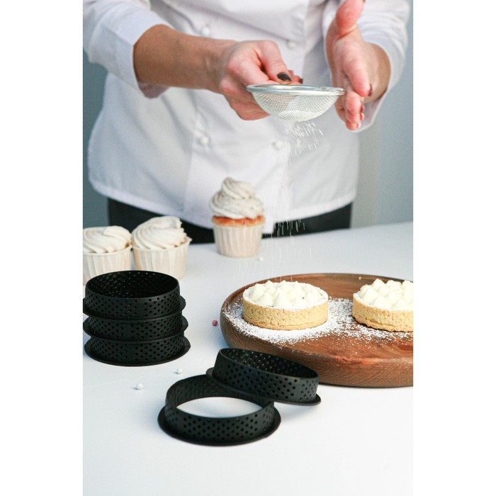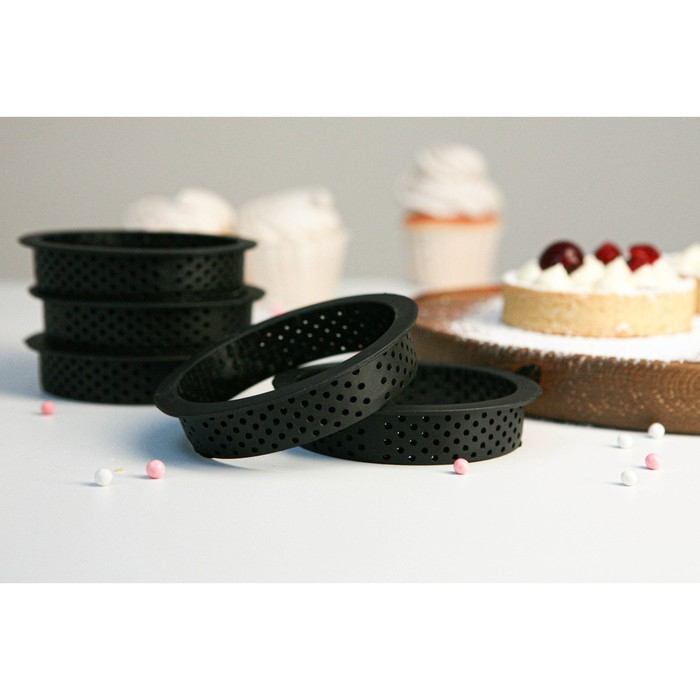 Набор перфорированных форм для выпечки Доляна, внутренний d=8,3 см, 6 шт, цвет чёрный