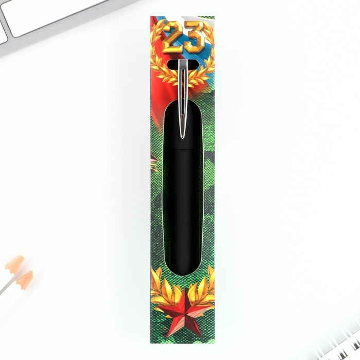Ручка шариковая синяя паста, пластиковая со звездой "С 23 Февраля"