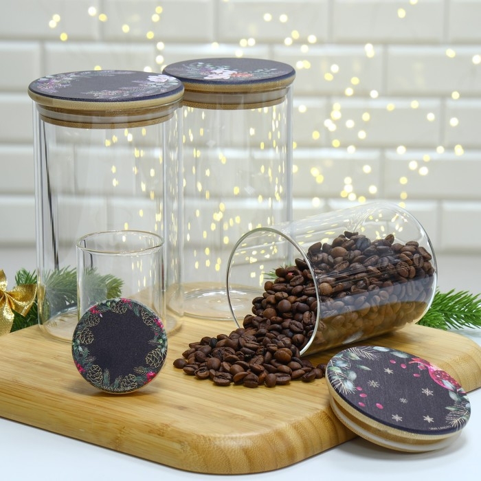 Набор банок стеклянных для сыпучих продуктов «Трио», 3 предмета: 350/550/750 мл, 9,5×10,5/15/19,8 см, цвет чёрный