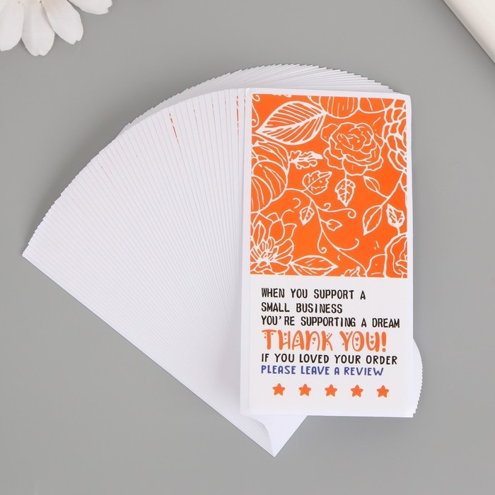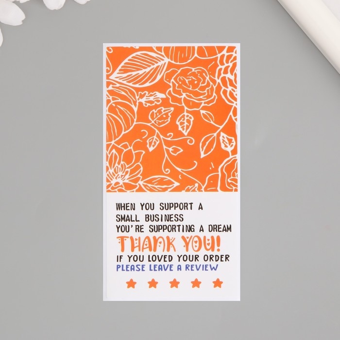 Наклейка бумага благодарность "Розы с листьями" набор 50 шт 10х5 см