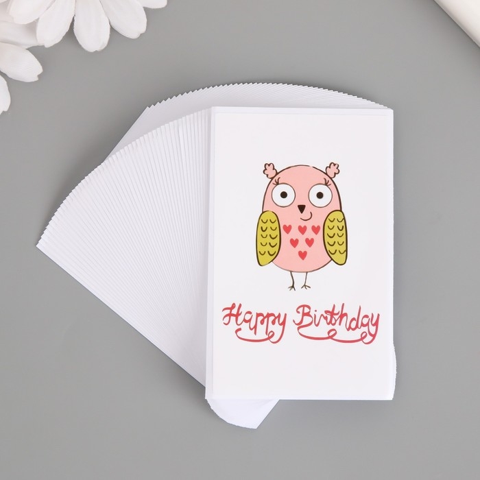 Наклейка бумага "С днем рождения. Сова с сердцами" набор 50 шт 8х5 см