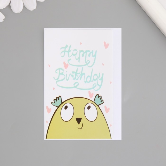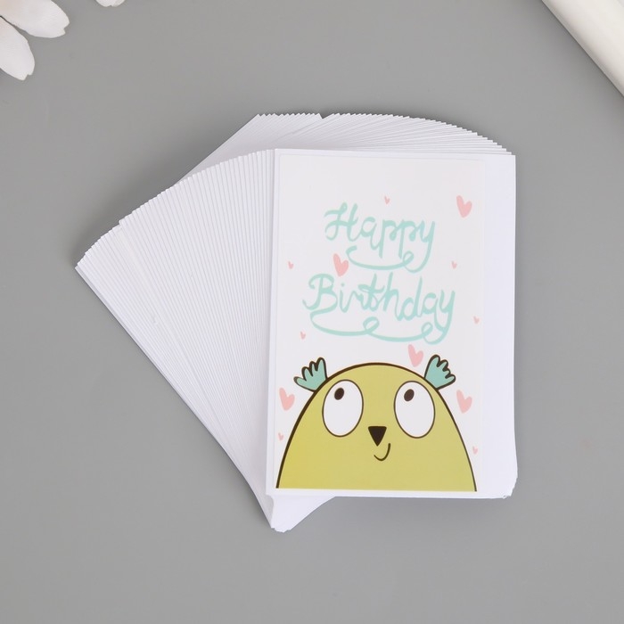 Наклейка бумага "С днем рождения, Радостный филин" набор 50 шт 8х5 см