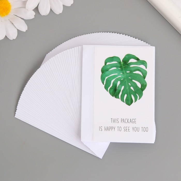 Наклейка бумага благодарность "Лист монстеры" набор 50 шт 8х5 см