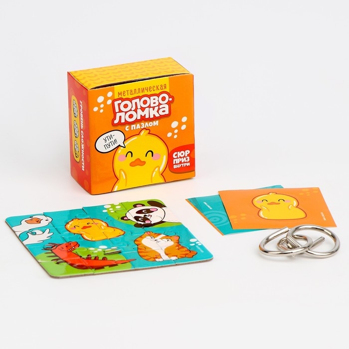 Металлическая головоломка с пазлами и наклейками "Зверушки", МИКС