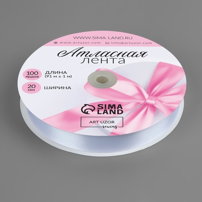 Лента атласная, 20 мм × 91 ± 1 м, цвет белый №01