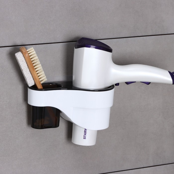 Держатель для фена и ванных принадлежностей в ванную на липучках, 18,7×10×9 см, цвет чёрно-белый
