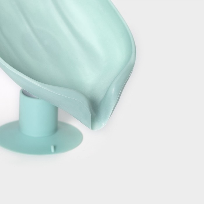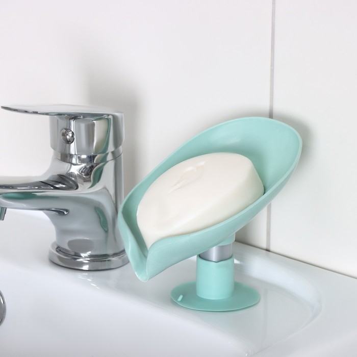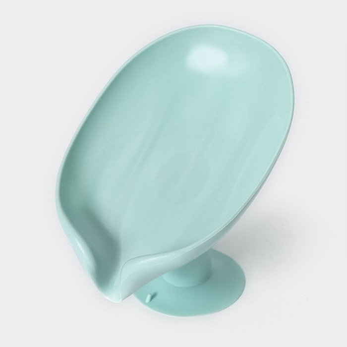 Мыльница со сливом для воды Доляна, на присоске, 12,5×9×10 см, цвет бирюзовый