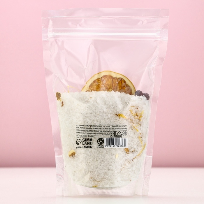 Соль для ванны с апельсином, цедрой мандарина, можжевеловой ягодой и календулой, 400 г, Новый Год