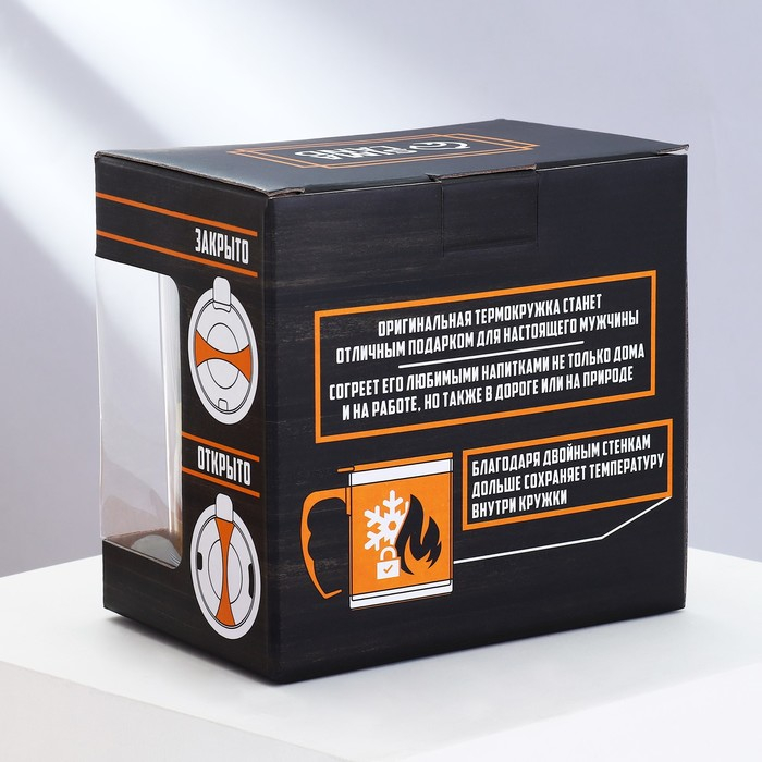 – Термокружка станет практичным аксессуаром и отличным подарком для мужчины.