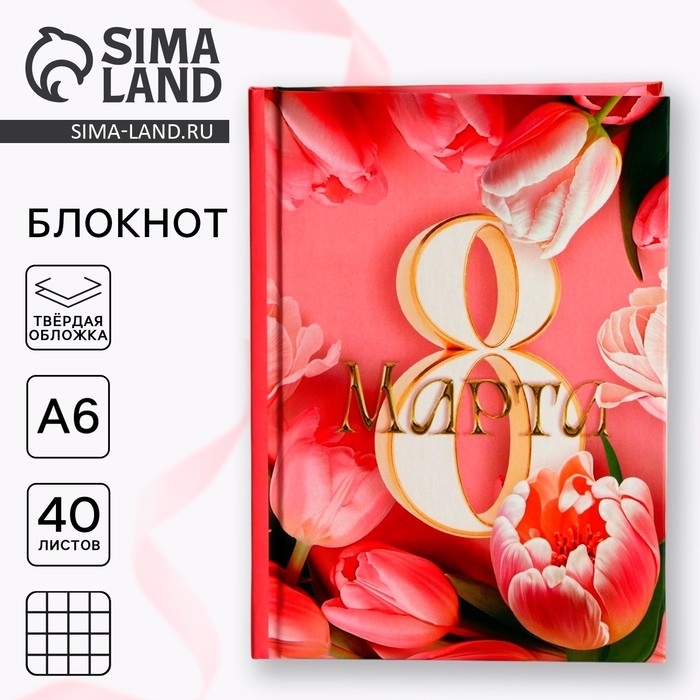 Блокнот в твёрдой обложке «8 Марта», А6, 40