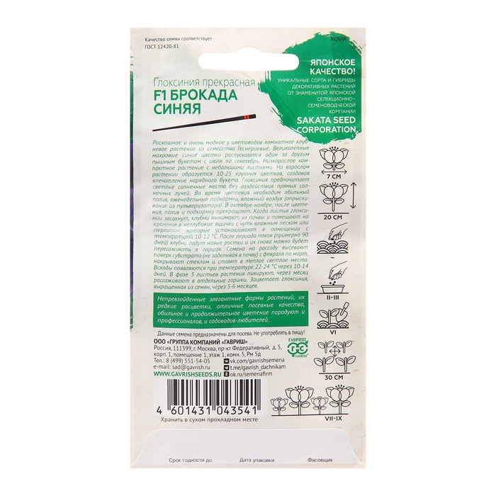 Семена цветов Глоксиния "Импресс Синие чернила", 5 шт.