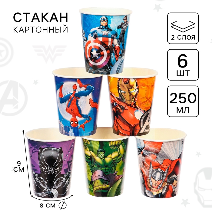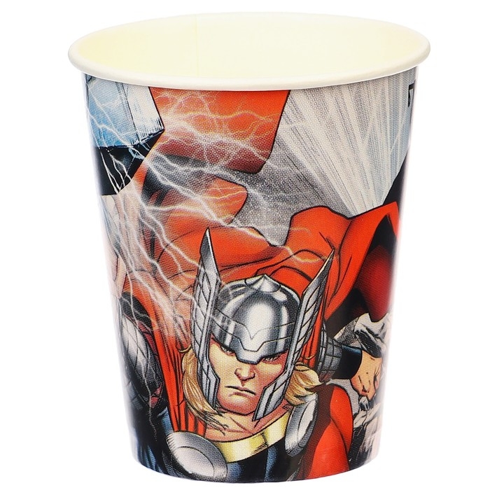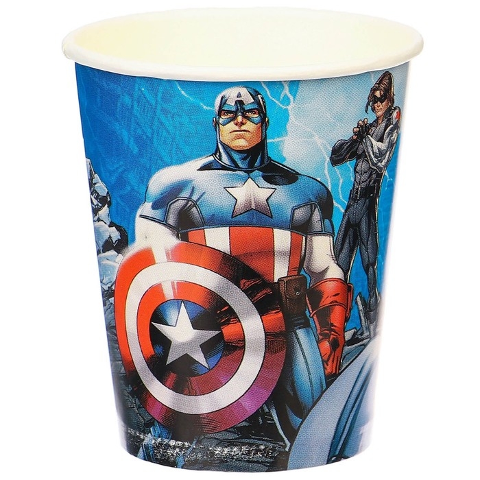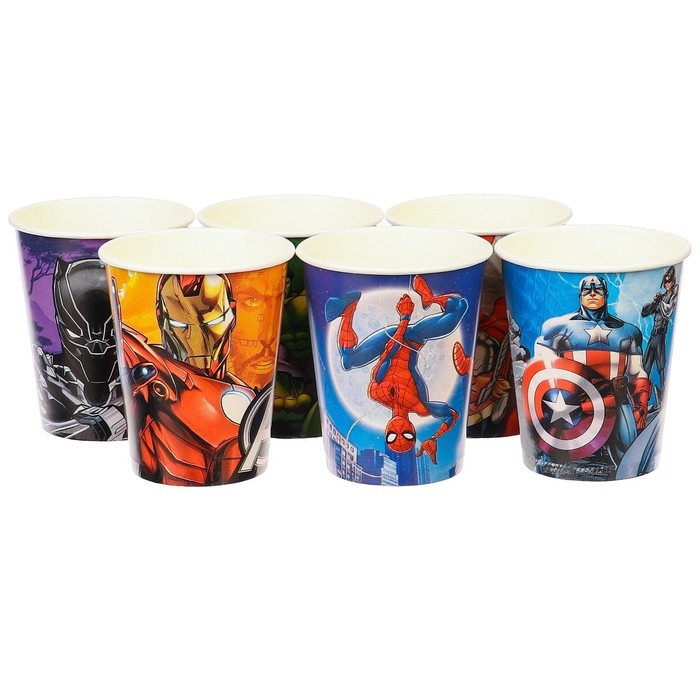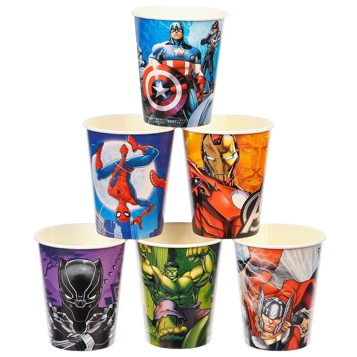 Стакан одноразовый бумажный "С Днем Рождения!", 250 мл, 6 штук, Мстители