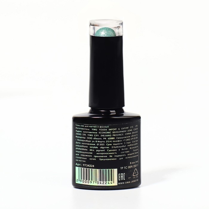 Гель лак для ногтей, «CHROME», шиммерный, 3-х фазный, 8мл, LED/UV, цвет зелёный (023)