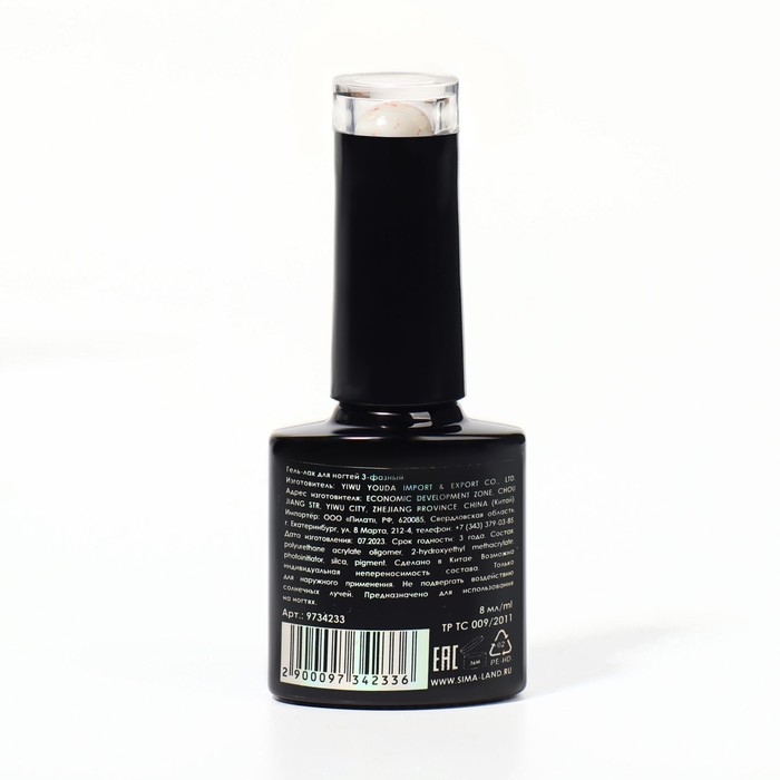 Гель лак для ногтей, «MILK POTAL», 3-х фазный, 8мл, LED/UV, цвет белый/персиковый (09)