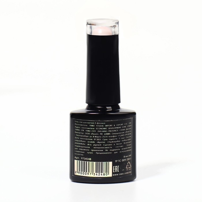 База камуфлирующая для ногтей, 3-х фазная, 8мл, LED/UV, цвет нежно-розовый (049)