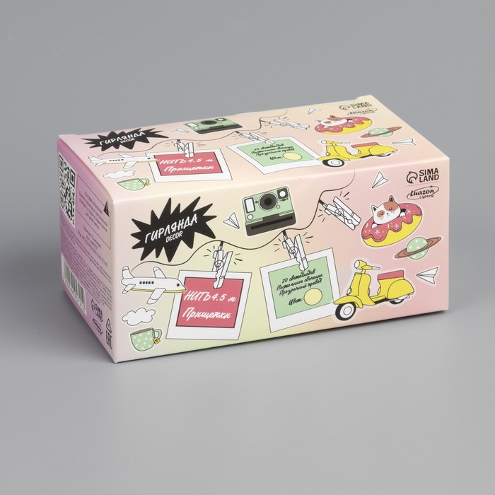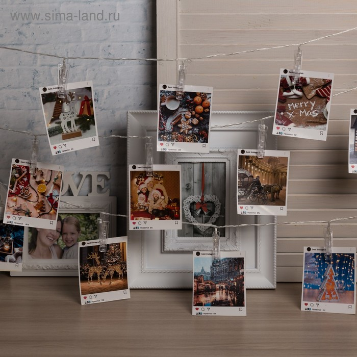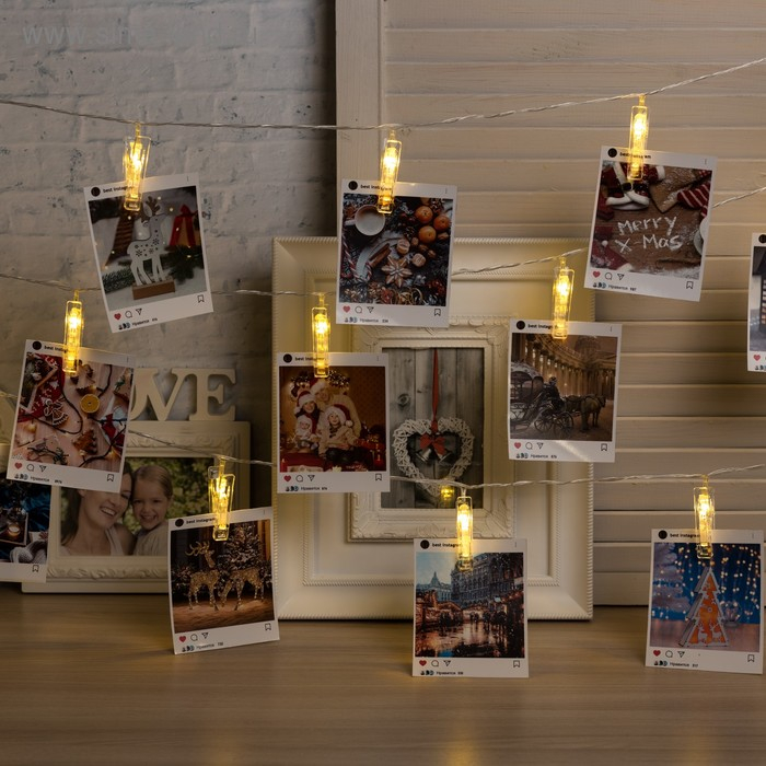 Гирлянда «Нить» 4.5 м с насадками «Прищепки», IP20, прозрачная нить, 20 LED, свечение тёплое белое, 220 В
