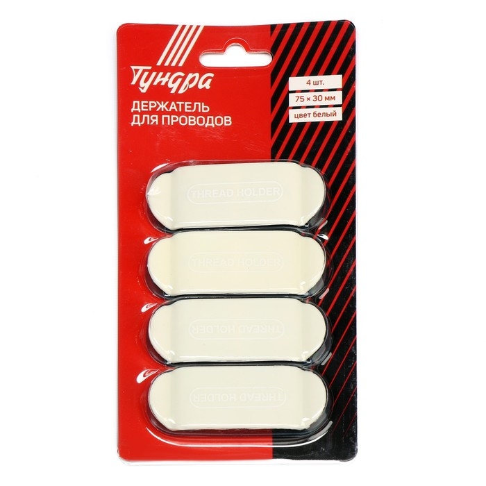 Держатель для проводов 75х30 мм, цвет белый, 4 шт.
