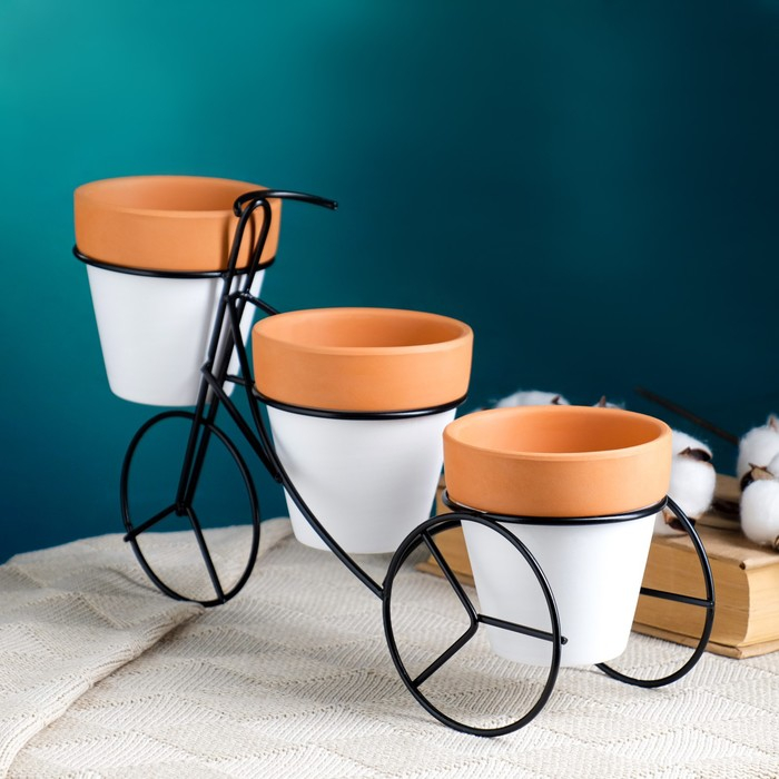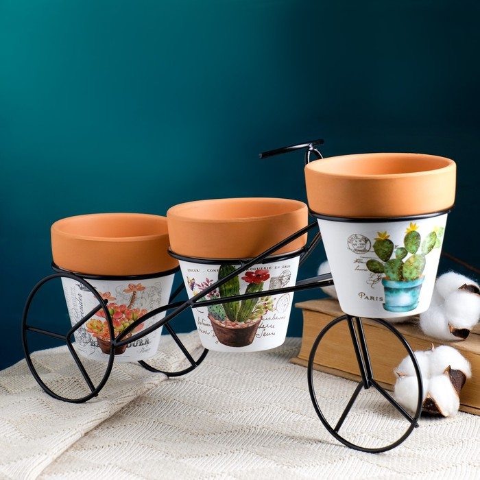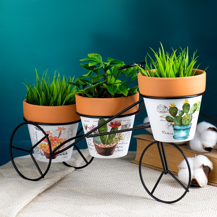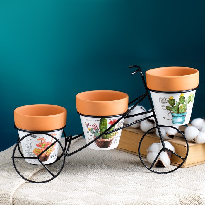 Набор кашпо "Велосипед" 3шт, на подставке, 9х9см