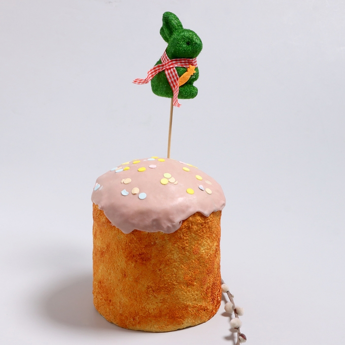 Пасхальный декор на палочке «Зайчик зелёного цвета» 5 × 6 × 24 см