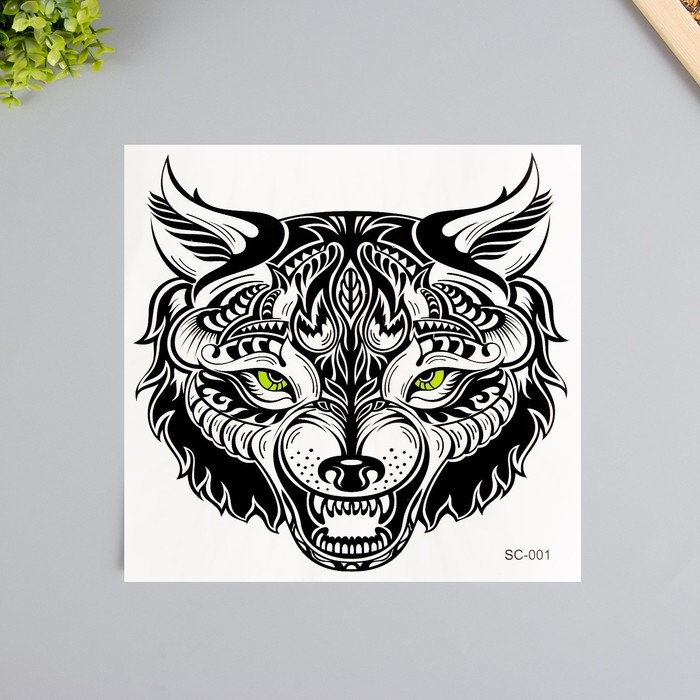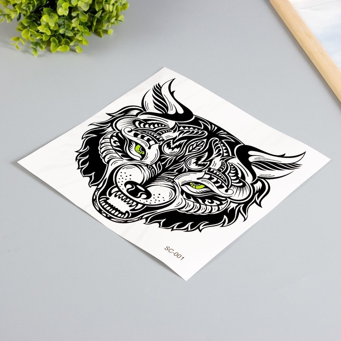 Татуировка на тело черная "Волк" 38х24 см