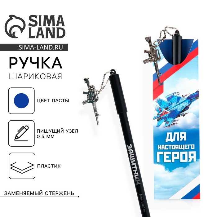 Ручка шариковая синяя паста 0.5 мм с подвеской автомат «Для настоящего героя» пластик