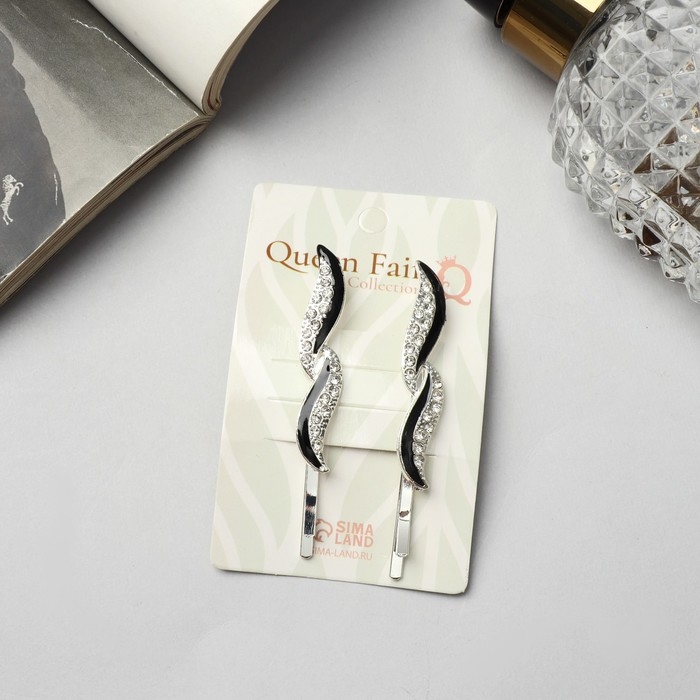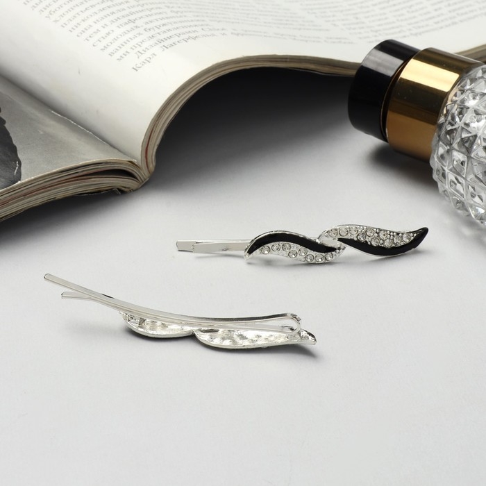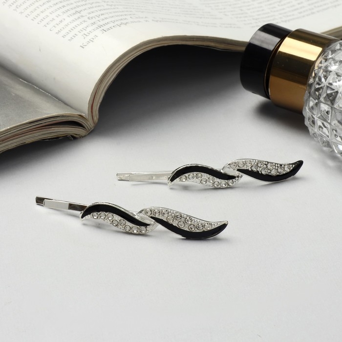 Невидимка для волос "Аннабелль" (набор 2 шт) листок, 6,5 см, серебро