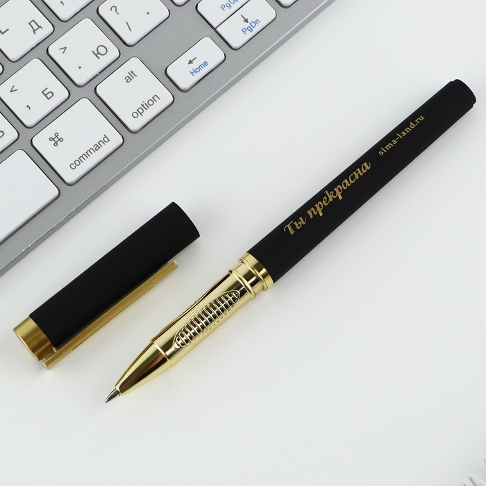 Ручка с колпачком и нанесением soft-touch «Любимому учителю», синяя паста 0.7 мм