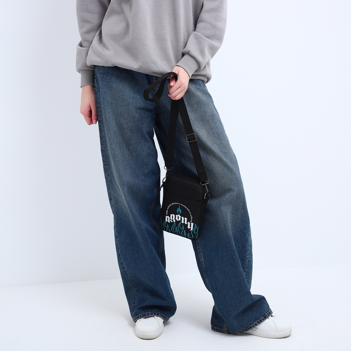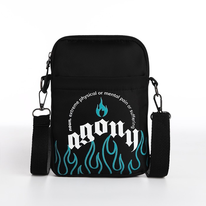 Сумка молодёжная на длинном ремне Agony, 20 х 15 х 3 см, отдел на молнии, цвет чёрный