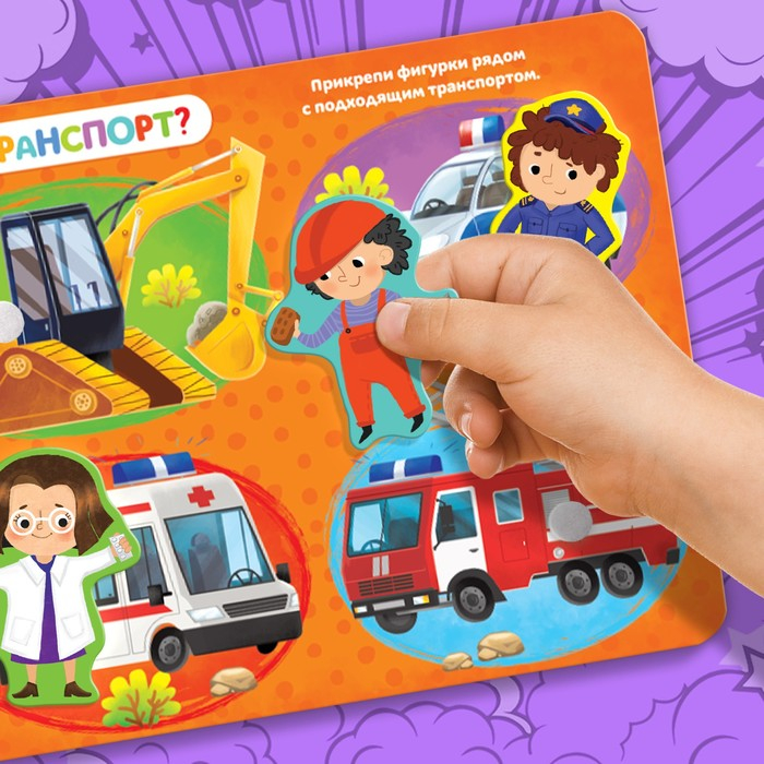 Кем мечтает стать малыш, когда вырастет? Книга с липучками поможет ребёнку узнать о разнообразных профессиях.