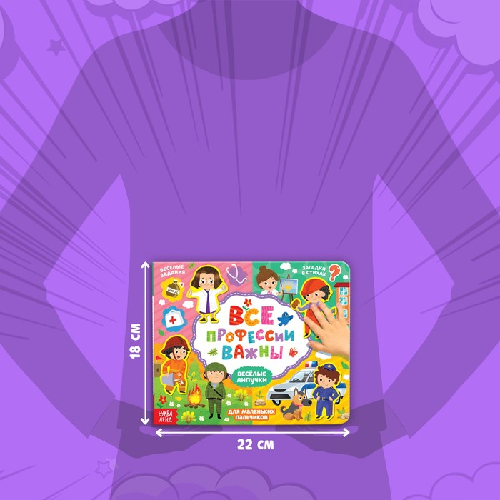 Обучающая книга с липучками «Все профессии важны» направлена на расширение кругозора у деток. Внутри ребёнок найдёт интересные задания и загадки в стихах.