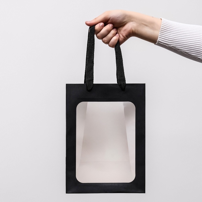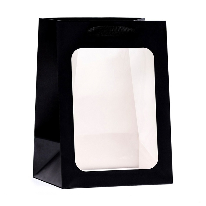 Пакет подарочный, с окном, 25 х 18 х 13 см, черный