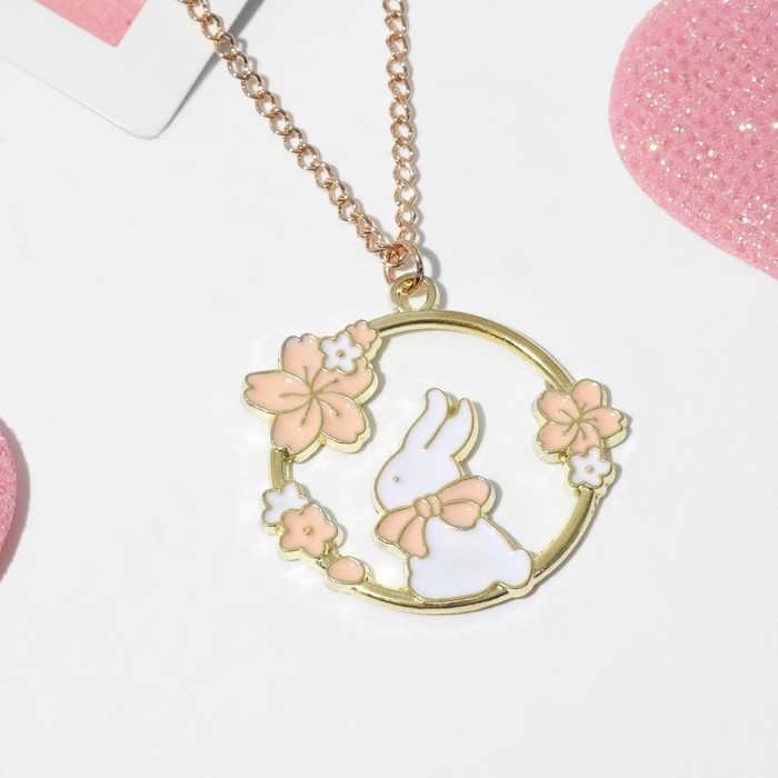 Кулон детский «Выбражулька» зайчик, цвет бело-розовый в золоте