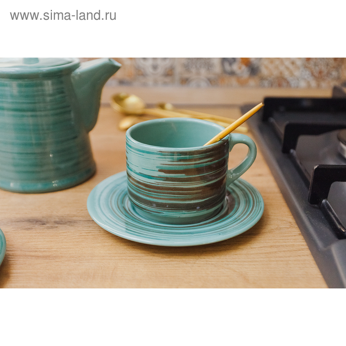 Чайная пара фарфоровая Magistro «Церера», 2 предмета: чашка 250 мл, блюдце d=16,3 см, цвет оранжевый