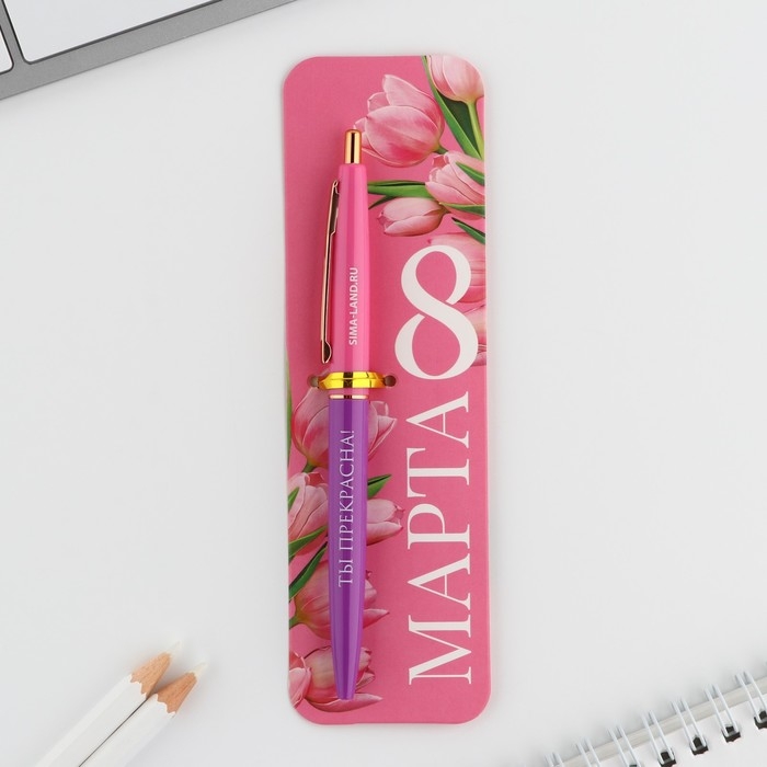 Ручка шариковая синяя паста автоматическая 0.7 мм «С 8 марта» пластик