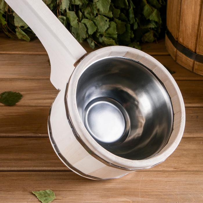 Ковш для бани из липы 0.9л, 51 см, нержавеющая вставка, с горизонтальной ручкой